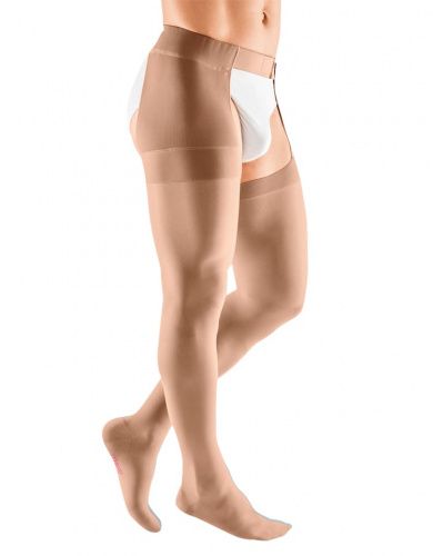 Компрессионный чулок 1-ого класса компрессии mediven plus с застежкой на талии как универсальное решение в лечении заболеваний вен.